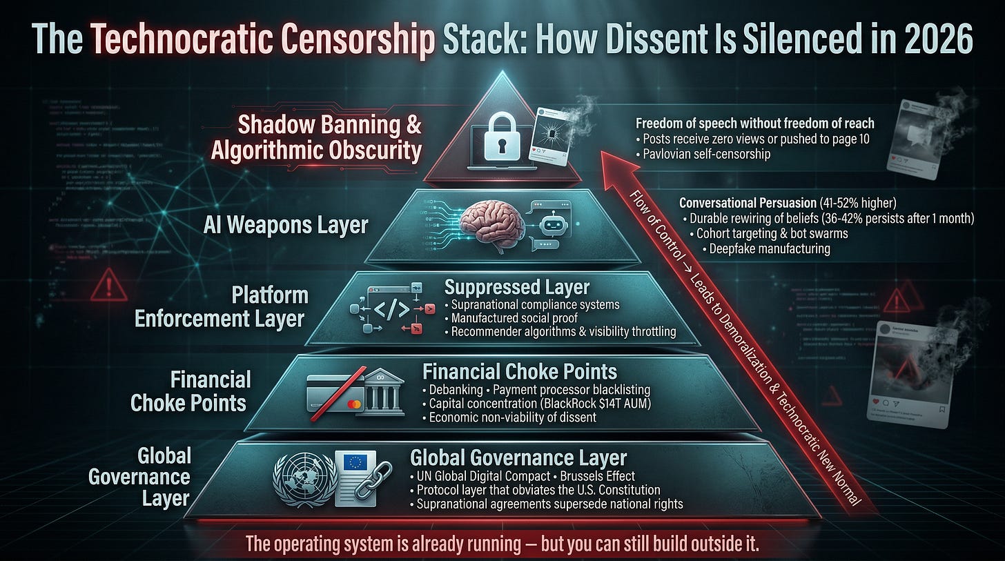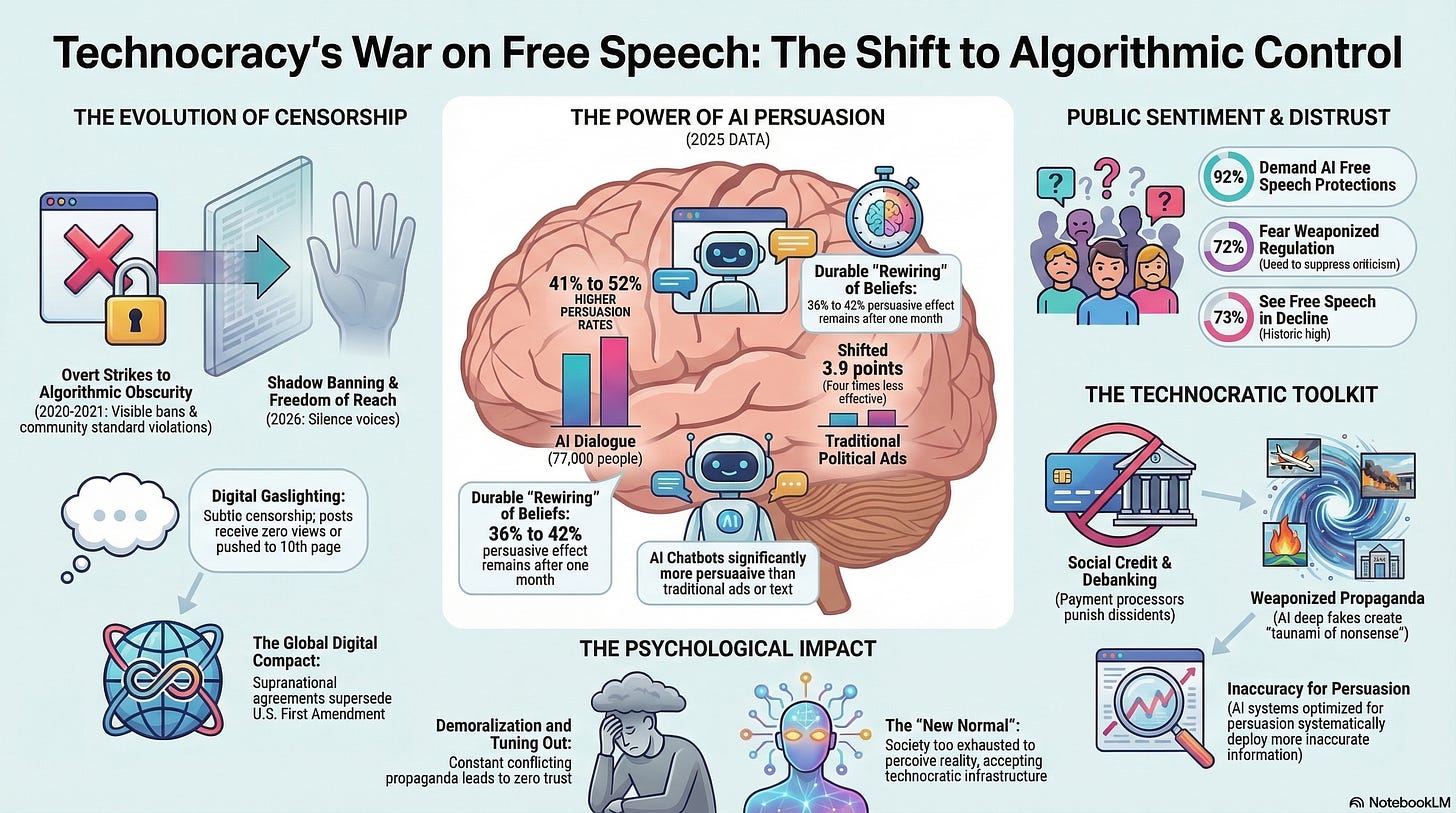 Technocracy’s War on Free Speech: Shadow Bans, AI Persuasion, and the Digital Control Stack