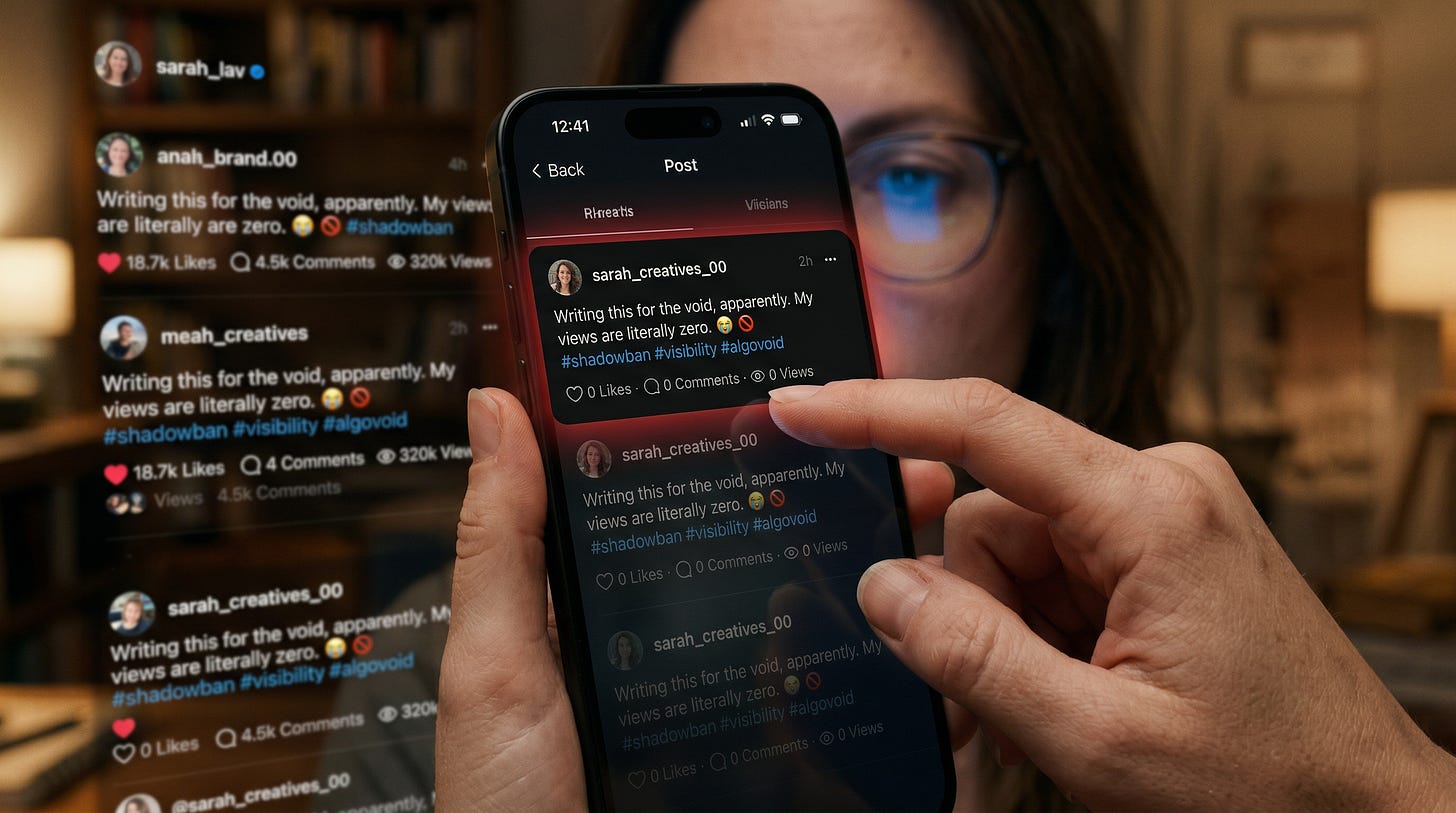 It’s not always dramatic strikes or a public takedown every time. Often the content still exists — it just quietly disappears. Zero reach. Vanished comments. The algorithm shrugs, and you’re left wondering if you’re crazy.