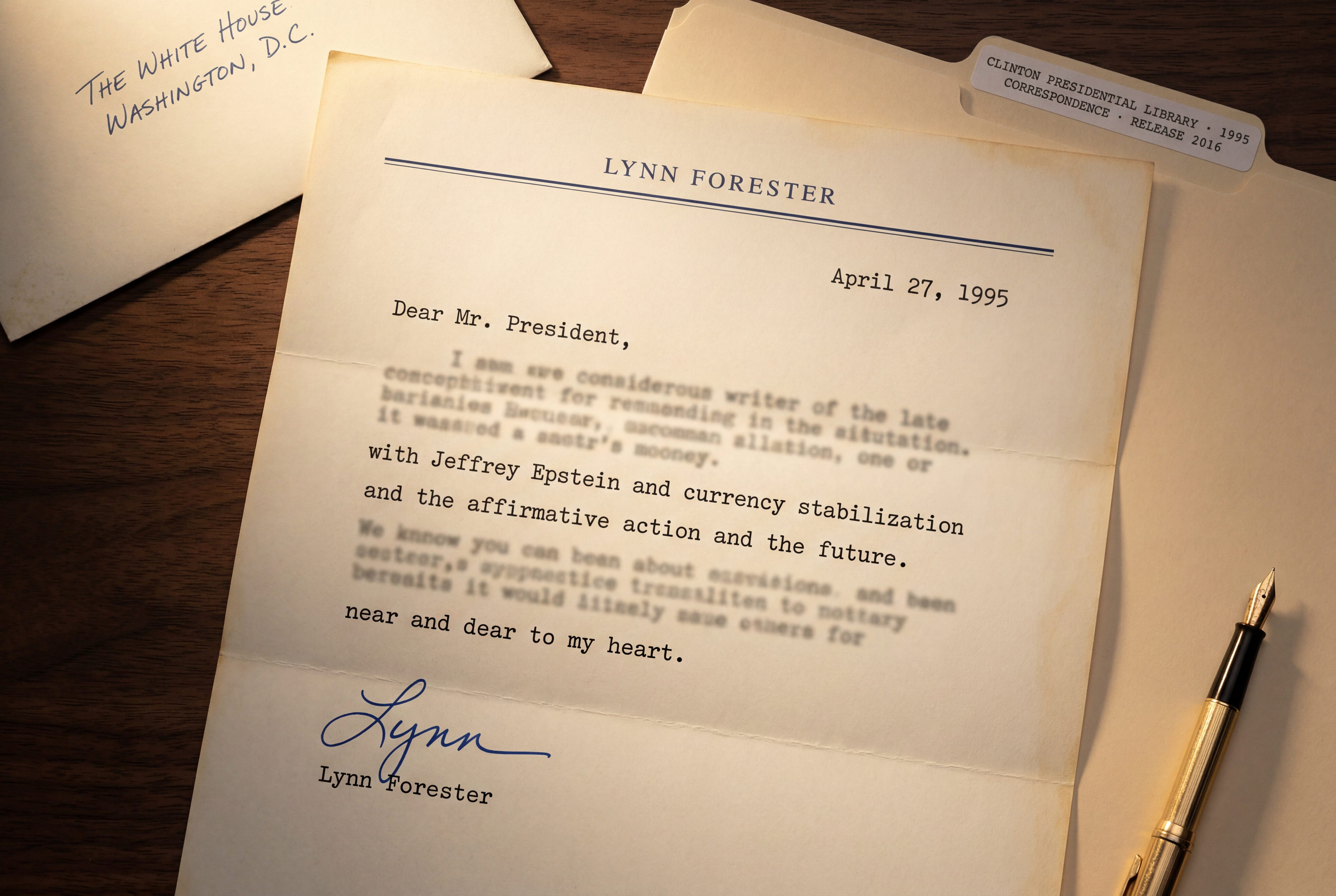 This framework did not arrive in 2020. It was being raised with a sitting president in 1995. On 27 April 1995, Lynn Forester — who would later marry Evelyn de Rothschild in 2000 and launch the Council for Inclusive Capitalism with the Vatican in 2020 — wrote a personal letter to President Clinton describing a recent meeting at Senator Kennedy’s house. Her words: “Using my fifteen seconds of access to discuss Jeffrey Epstein and currency stabilization, I neglected to talk with you about a topic near and dear to my heart. Namely, affirmative action and the future.” One sentence. The financial-governance mechanism and the social-allocation framework carried by the same person, in the same letter, to the same office, thirty-one years before BIS purpose-bound money. Epstein and currency. Affirmative action and the future. The same hand writing both.