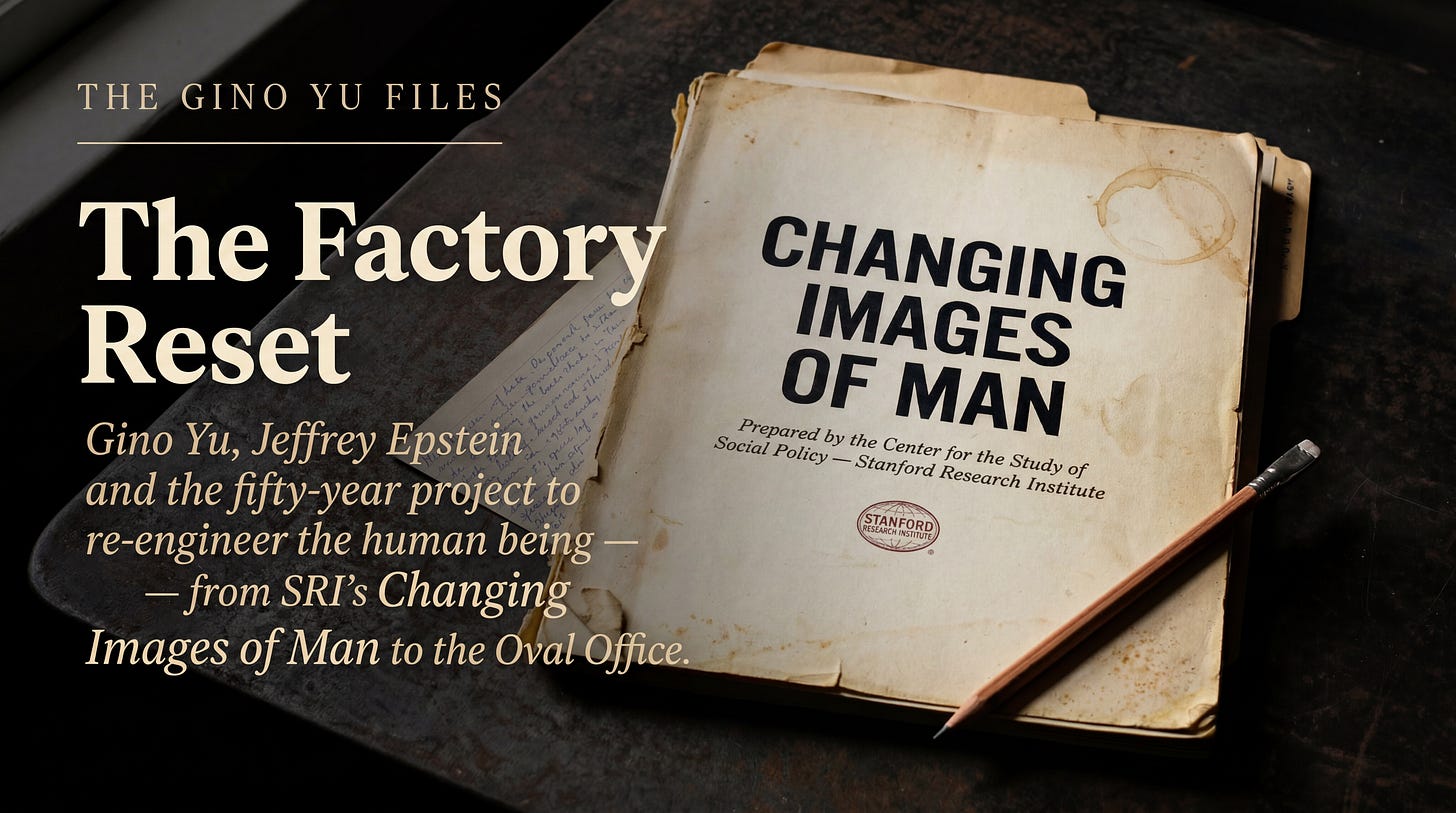 Gino Yu, Jeffrey Epstein, and the fifty-year project to replace the human being — from SRI’s Changing Images of Man to the Oval Office.